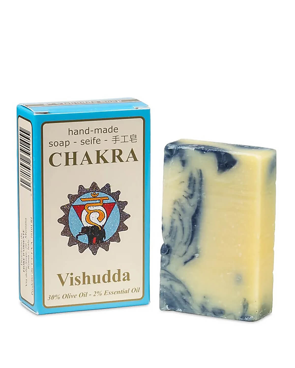 Χειροποίητο Σαπούνι με Αιθέριο Έλαιο Λεβάντας – 70 g Ξεκινήστε την ημέρα σας με ισορροπία και ηρεμία χρησιμοποιώντας το Vishudda Chakra Soap στο μπάνιο ή το ντους σας. Ένα χειροποίητο, φυτικό σαπούνι, φτιαγμένο με την παραδοσιακή ψυχρή μέθοδο που διατηρεί τη φυσική γλυκερίνη και προσφέρει κρεμώδη υφή και ενυδάτωση. Αρωματισμένο με αιθέριο έλαιο λεβάντας, καταπραΰνει το δέρμα και τις αισθήσεις ενώ υποστηρίζει το 5ο Τσάκρα (Vishudda – Λαιμός), το κέντρο της επικοινωνίας, της αλήθειας και της δημιουργικής έκφρασης. Chakra Soaps – Εμπνευσμένα από την Παράδοση Τα Chakra Soaps παρασκευάζονται με την ψυχρή μέθοδο, που διατηρεί τη φυσική γλυκερίνη και όλα τα πολύτιμα συστατικά, καθιστώντας τα κρεμώδη και βαθιά ενυδατικά. Εμπλουτισμένα με αιθέρια έλαια, ψυχρής έκθλιψης έλαια και φαρμακευτικά βότανα, φροντίζουν την επιδερμίδα ενώ παράλληλα υποστηρίζουν την ενεργειακή ισορροπία των τσάκρας. Ιδανικό για το πρωινό σας τελετουργικό, βοηθώντας σας να καλλιεργήσετε ηρεμία, ειλικρίνεια και καθαρή επικοινωνία.