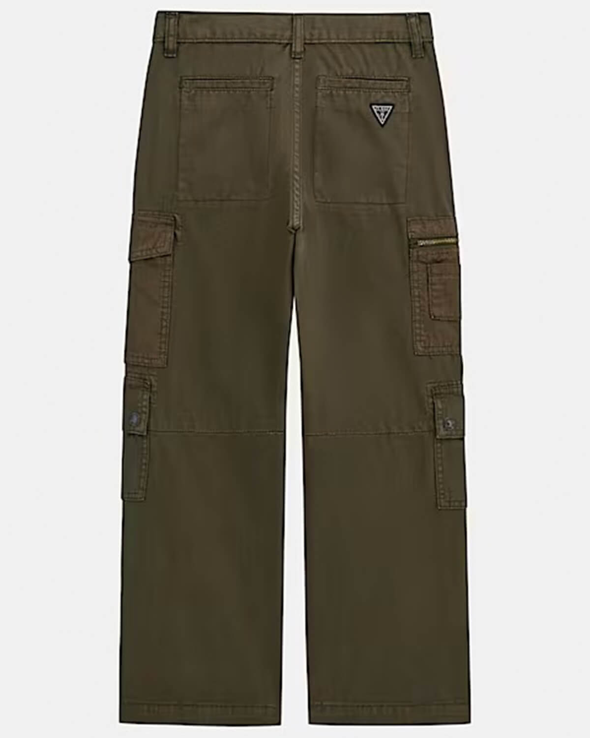Ανακαλύψτε το ultimate cargo παντελόνι για αγόρια από τη Guess. Κατασκευασμένο από ανθεκτικό rigid gabardine ύφασμα σε στυλάτο λαδί χρώμα, διαθέτει πολλαπλές λειτουργικές cargo τσέπες και λεπτομέρειες με φερμουάρ. Η ευθεία relaxed γραμμή εξασφαλίζει άνετη κίνηση, ενώ το signature τρίγωνο logo patch της Guess υπογραμμίζει την premium ποιότητα. Οι ενισχυμένες ραφές εγγυώνται μακροχρόνια αντοχή για όλες τις περιπέτειες. Ιδανικό για casual καθημερινές εμφανίσεις και σχολικές δραστηριότητες. Συνδυάστε το με hoodie ή t-shirt για ένα cool urban look!