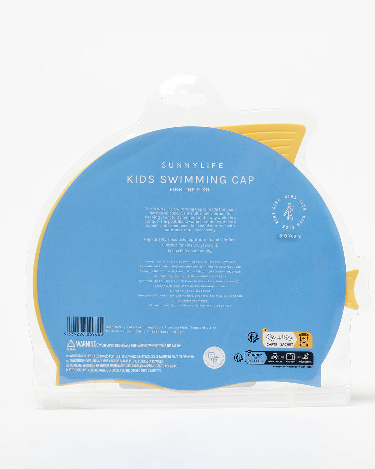 Παιδικό Σκουφάκι Κολύμβησης Sunnylife - Finn the Fish Mustard Stripe