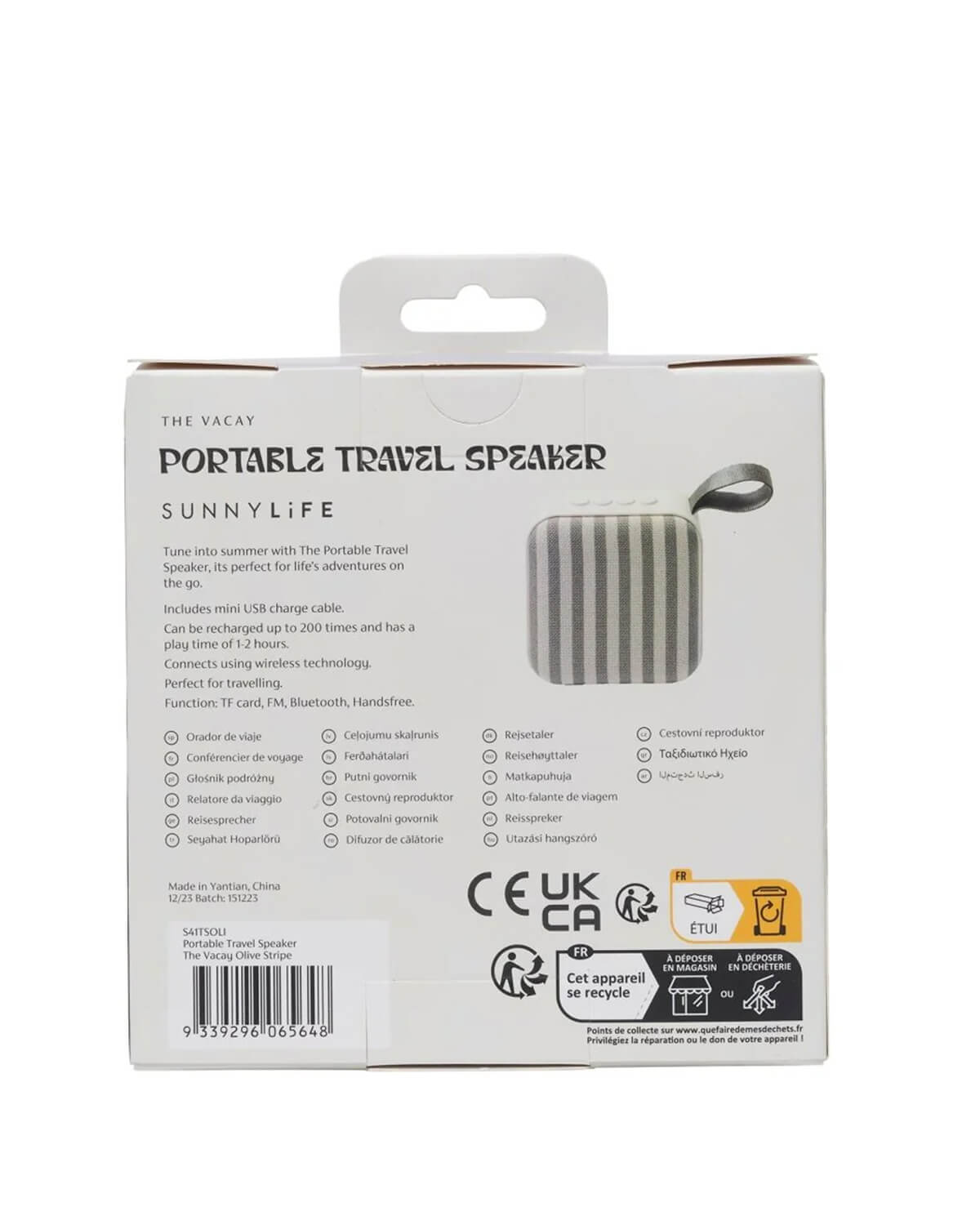 Sunnylife - Portable Travel Speaker The Vacay Olive Stripe