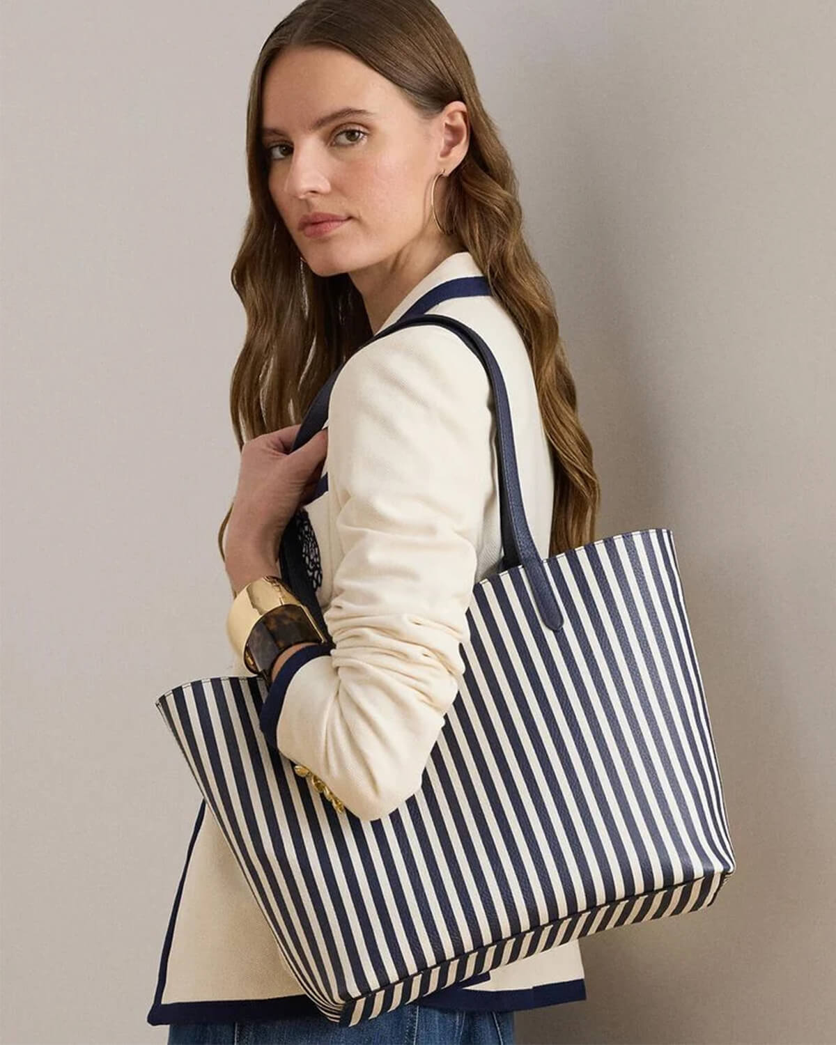 Η Ralph Lauren reversible tote σε μπλε συνδυάζει λειτουργικότητα με premium αισθητική, προσφέροντας δύο στυλιστικές επιλογές σε μία τσάντα. Με ανθεκτικό υλικό, ευρύχωρο εσωτερικό και καθαρές γραμμές, είναι ιδανική για καθημερινές εμφανίσεις, είτε στο γραφείο είτε στις casual εξόδους σας.