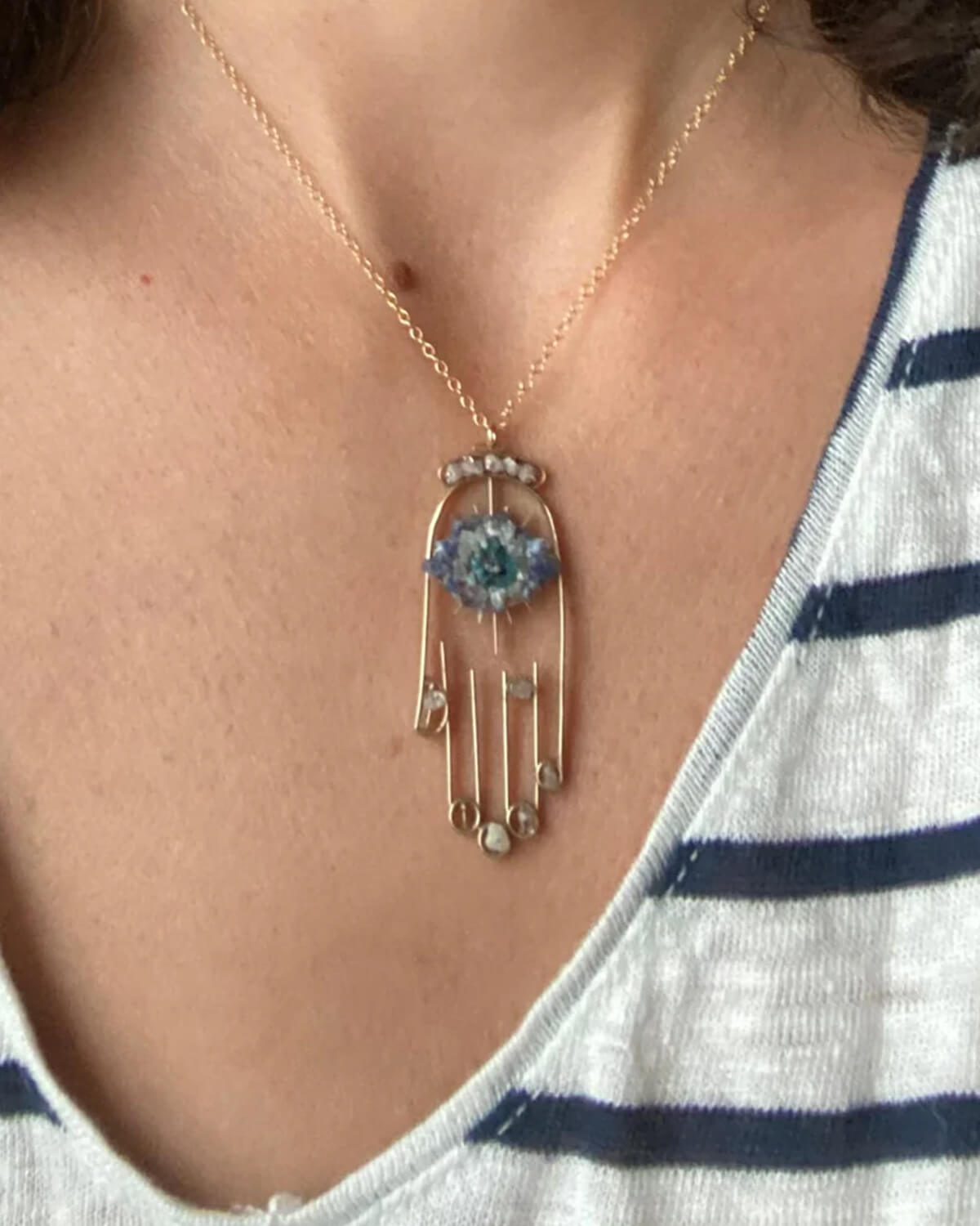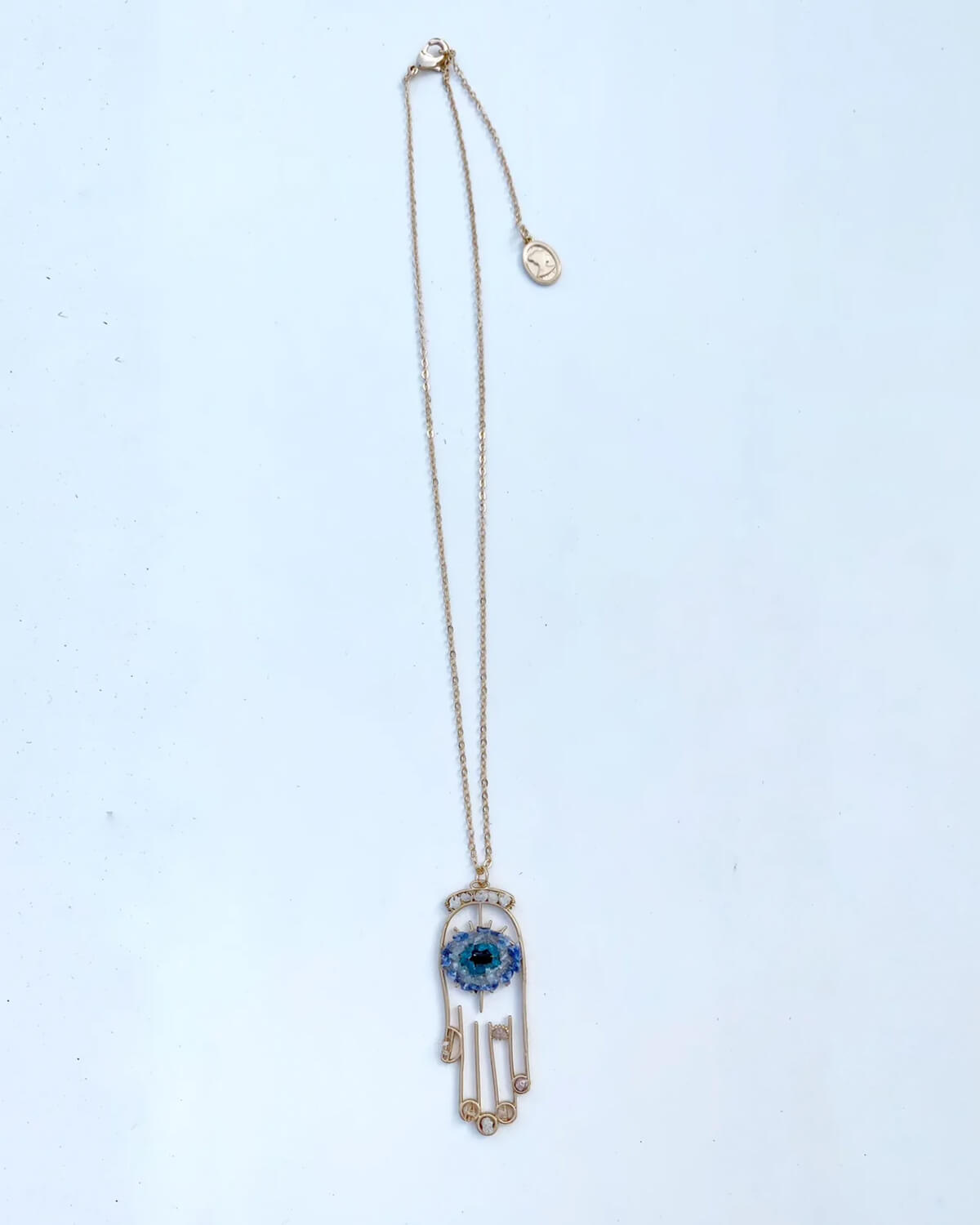 Το Κολιέ Hamsa με Θεραπευτικούς Κρυστάλλους ξεχωρίζει για την μοναδική του χειροτεχνία, που προκαλεί θαυμασμό. Με περίτεχνα μοτίβα, το μενταγιόν τραβά τα βλέμματα και προκαλεί συζητήσεις όπου κι αν βρεθείτε. Κάθε λεπτομέρεια του κολιέ έχει σχεδιαστεί με πρόθεση, αφηγούμενη μια ιστορία ανθεκτικότητας, δύναμης και ελπίδας. Δεν είναι απλώς ένα κόσμημα, αλλά ένα σημαντικό κομμάτι της προσωπικής σας ιστορίας.