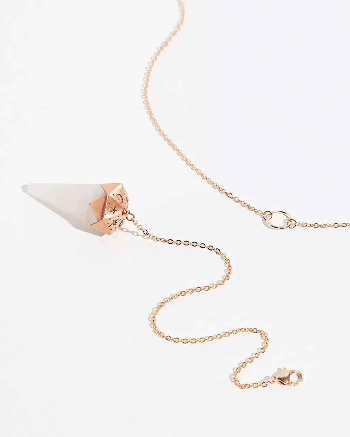 Ανακαλύψτε την ευελιξία και τη δύναμη του Κολιέ Εκκρεμές Διαίσθησης με αφαιρούμενο εκκρεμές. Αυτό το εντυπωσιακό κόσμημα σας επιτρέπει να φοράτε τον θεραπευτικό κρύσταλλο κοντά στην καρδιά σας ή να τον αφαιρείτε για χρήση ως εργαλείο διαίσθησης.