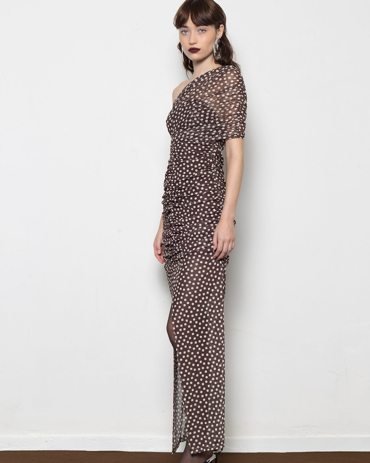 Γυναικείο Maxi Φόρεμα Mallory The label - Monsoon Tulle Ruched Dress With One Shoulder Γυναικείο Maxi Φόρεμα Mallory The label - Monsoon Tulle Ruched Dress With One Shoulder