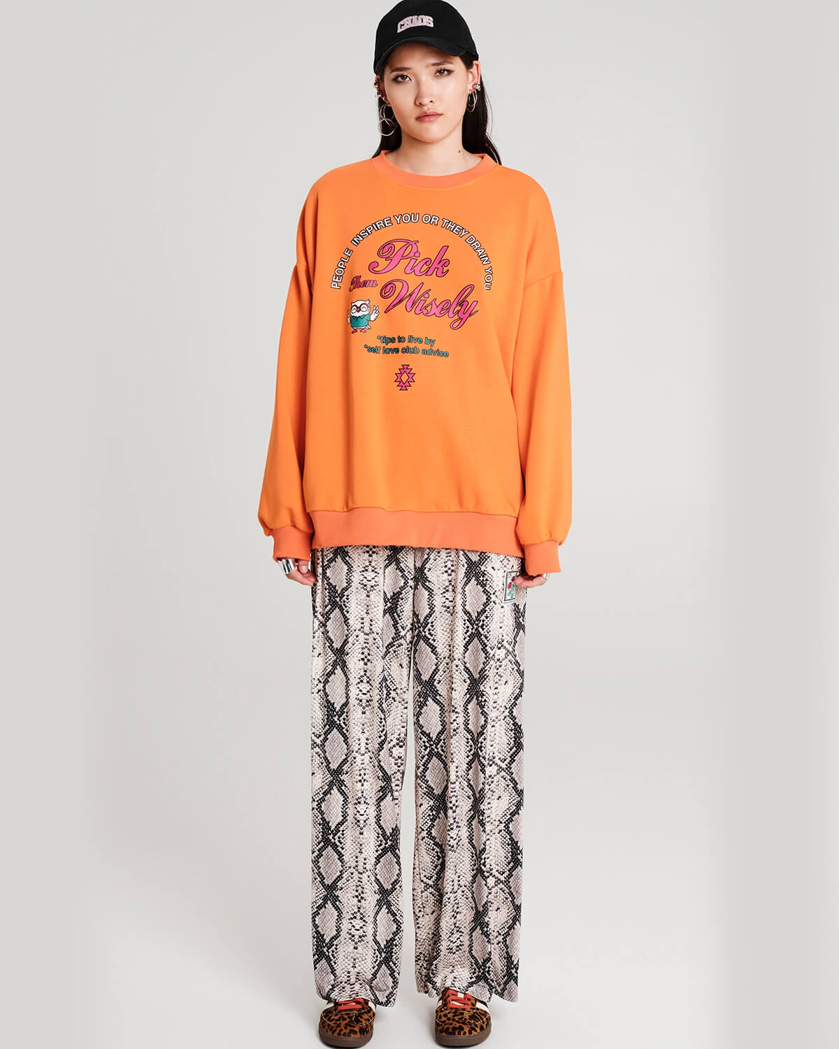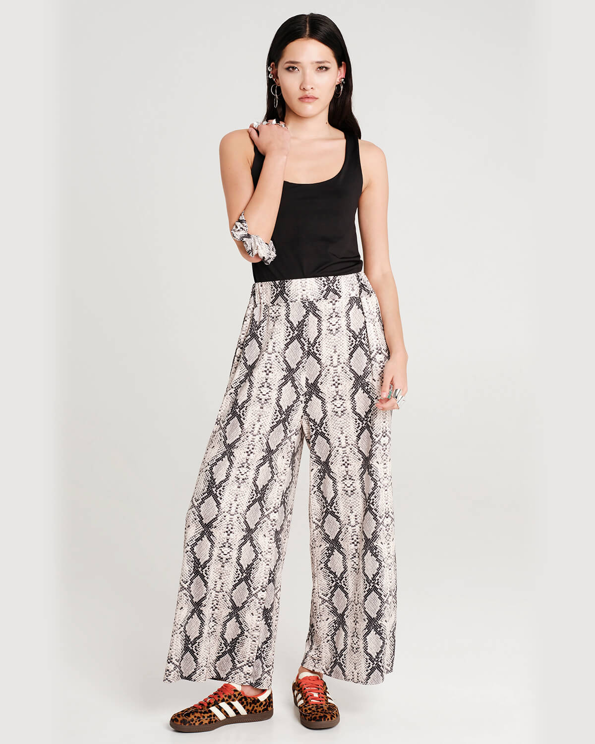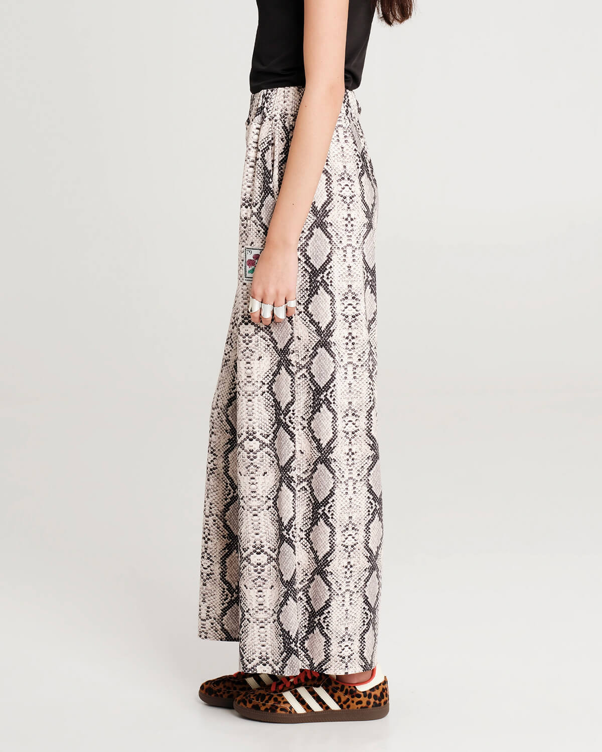 Το Serpentine Pants ξεχωρίζει μέσα από το έντονο, μοτιβικό του σχέδιο που προσθέτει χαρακτήρα σε κάθε εμφάνιση. Η ρευστή κατασκευή του προσφέρει άνεση και ελευθερία κινήσεων, διατηρώντας παράλληλα κομψή γραμμή. Συνδυάζεται εύκολα με minimal tops για πιο ισορροπημένο αποτέλεσμα ή με αντίστοιχο κομμάτι για ένα ολοκληρωμένο statement σύνολο, προσαρμοζόμενο από το πρωί έως το βράδυ.