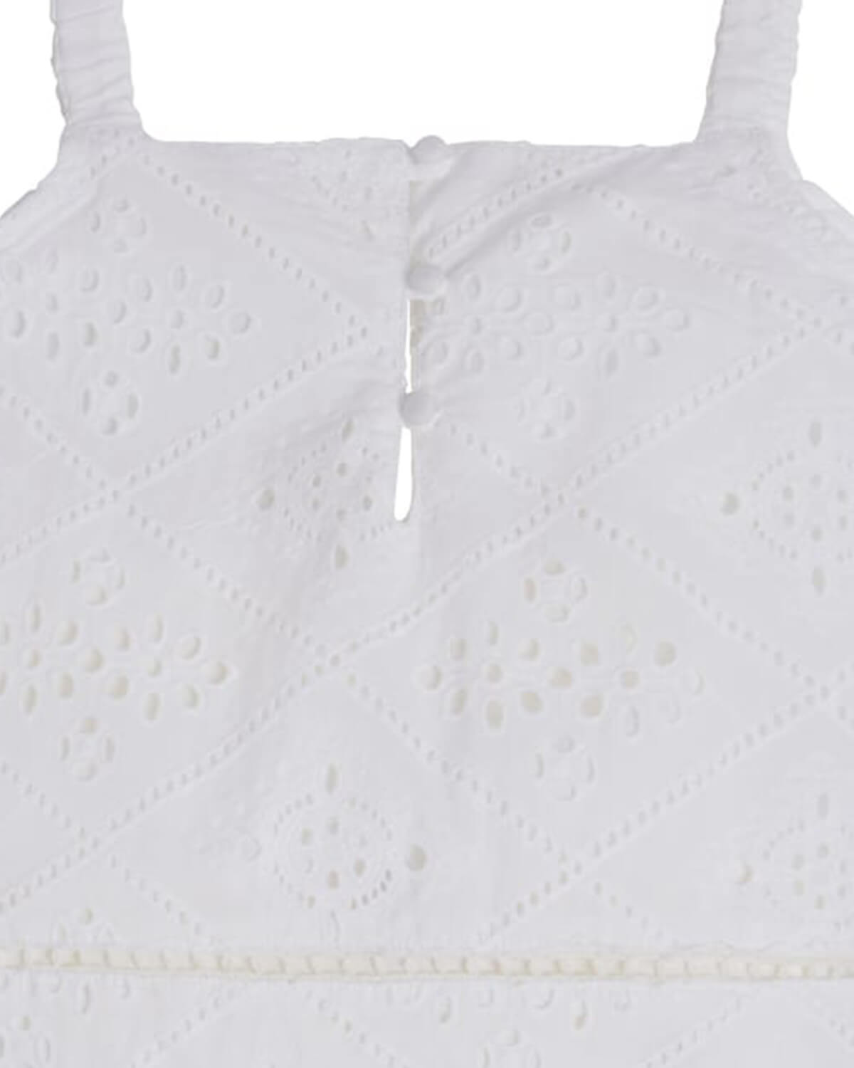 Elevate your little one’s style with this iconic dress by Guess, for endless games and walks in attitude and comfort. It has ruffled and embroidered details, and your kid is going to love it.