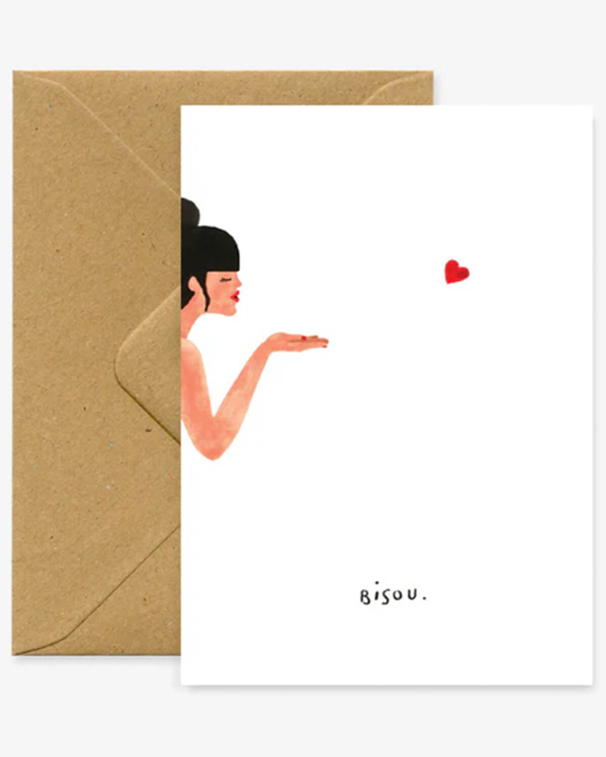 Atws- Bisous A6 Size Love Card In Natural White Paper