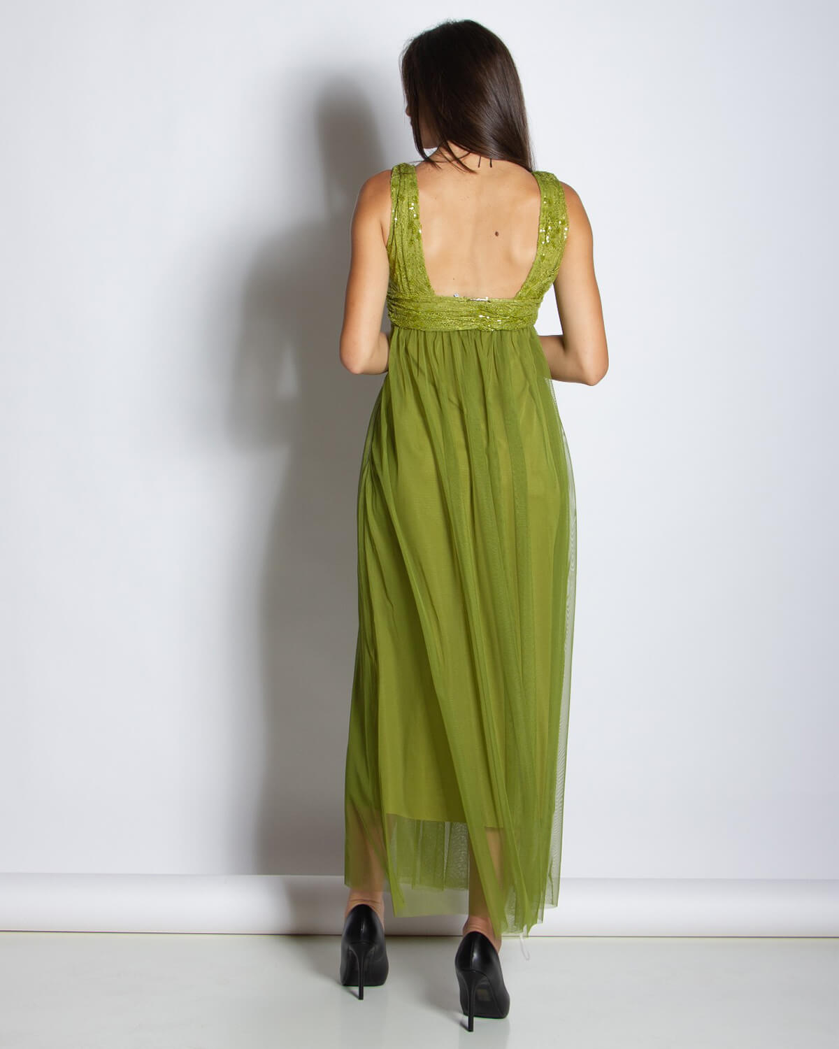 Elevate your style with this iconic dress by Hellen Batterr, for unique appearances in elegance and attitude. The sequined details and the V neckline will make you stand out effortlessly, with heels and glamorous accessories.