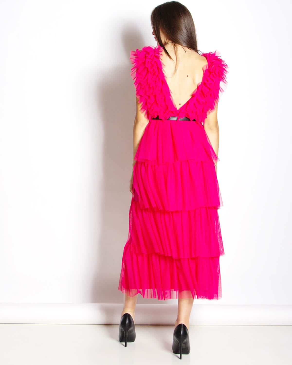 Elevate your style with this iconic maxi dress by Hellen Batterr, for unique appearances in elegance and attitude. The V neckline and the tulle overlays will make you stand out effortlessly, with heels and glamorous accessories.