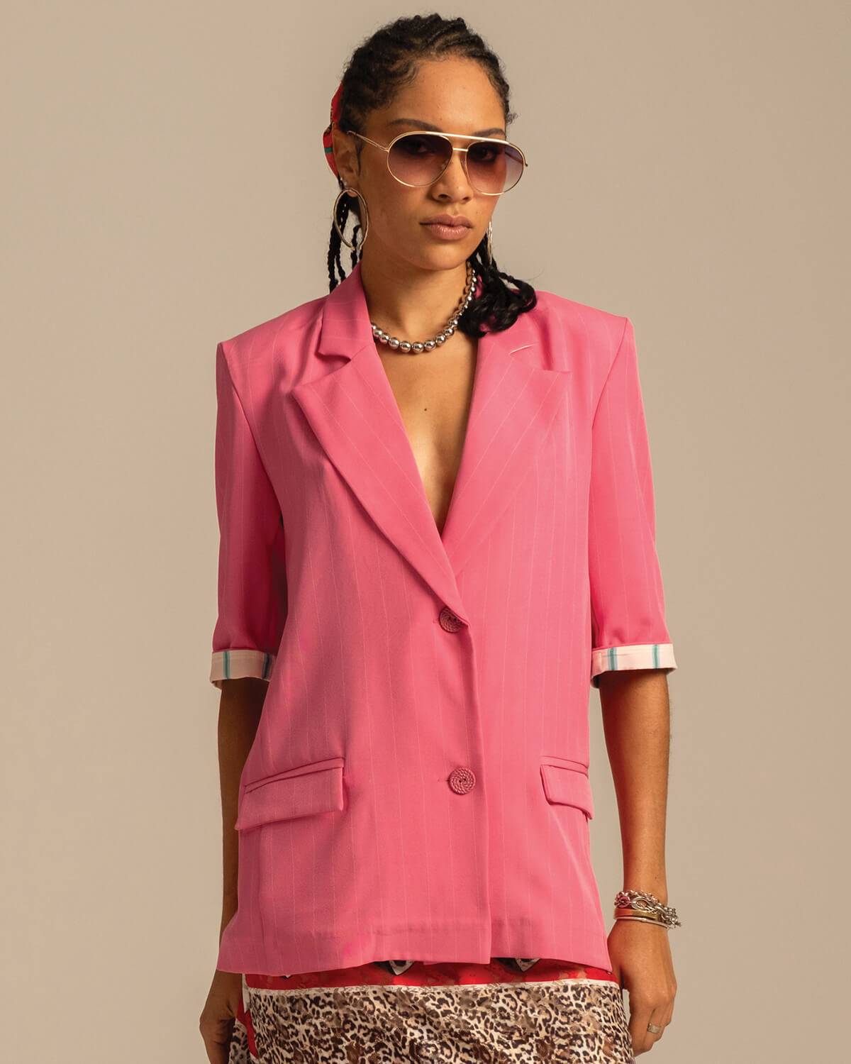 Elevate your style with this iconic blazer by Peace and Chaos, for unique appearances in attitude and comfort. The unique texture and the logo details will make you stand out effortlessly, from morning till night. Shipping worldwide.