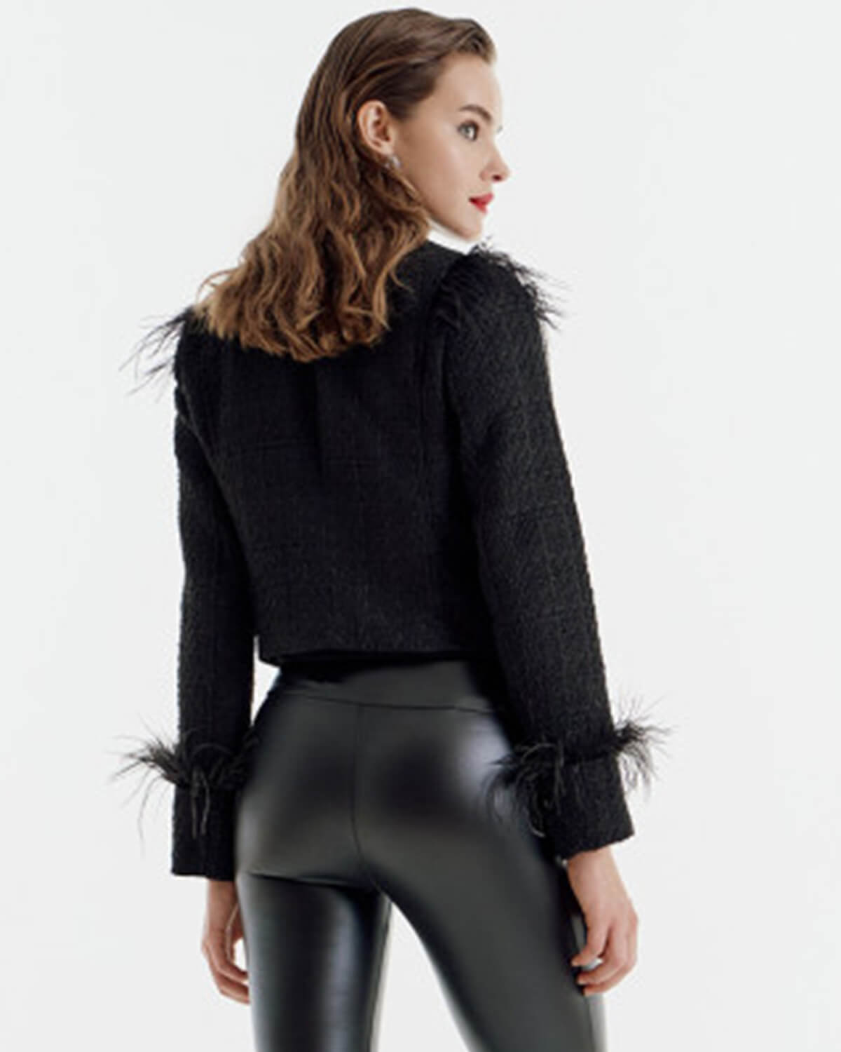 Spell - 1002 Cropped Tweed Blazer With Feathers