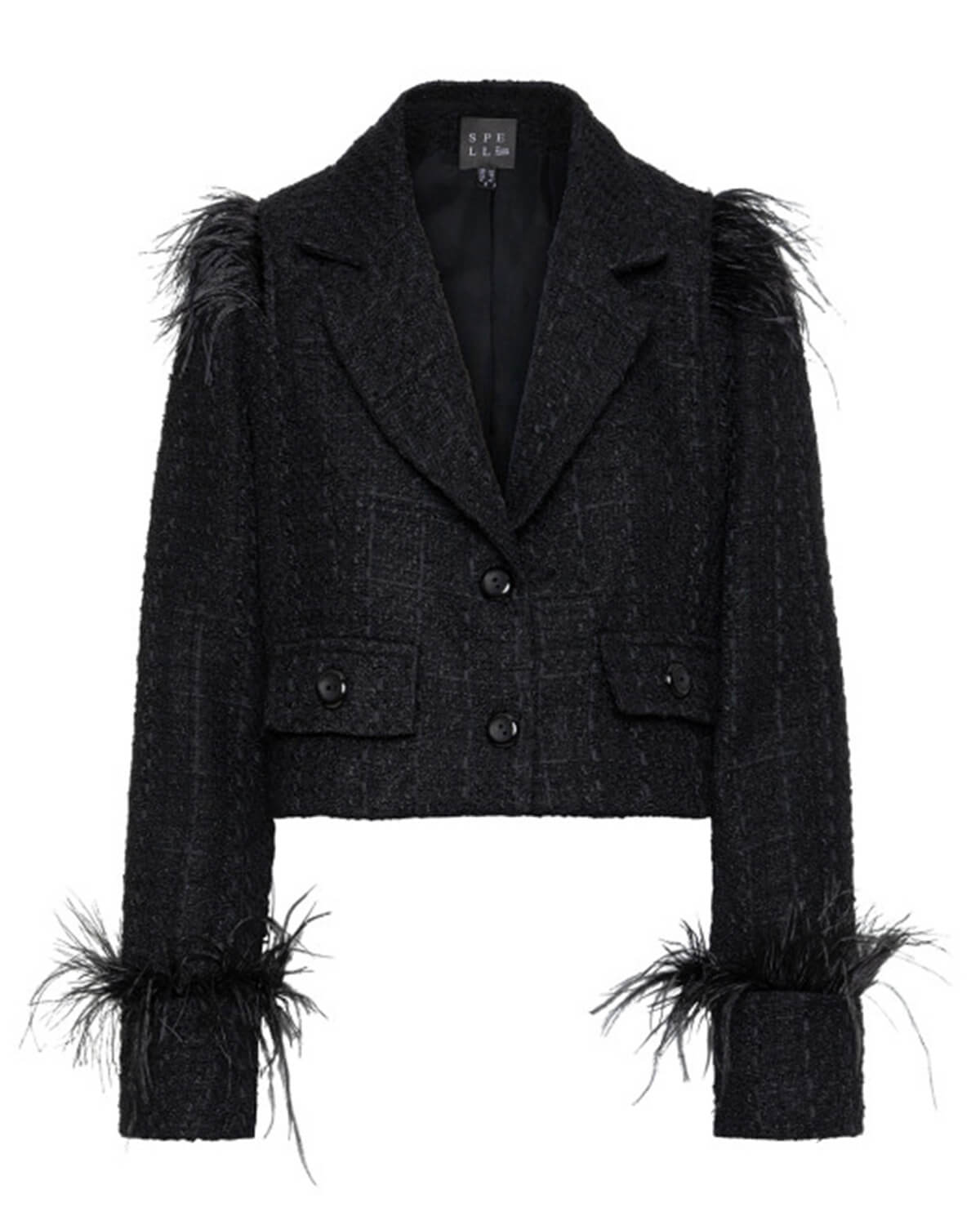 Spell - 1002 Cropped Tweed Blazer With Feathers Spell - 1002 Cropped Tweed Blazer With Feathers