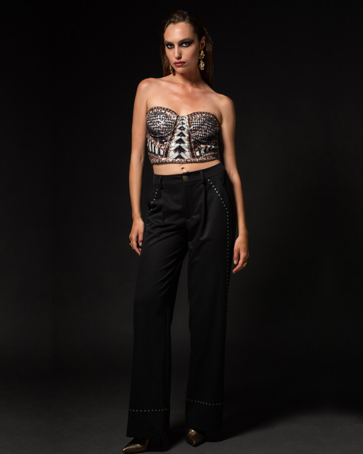 • 80% polyester, 11% rayon, 5% lurex, 4% spandex