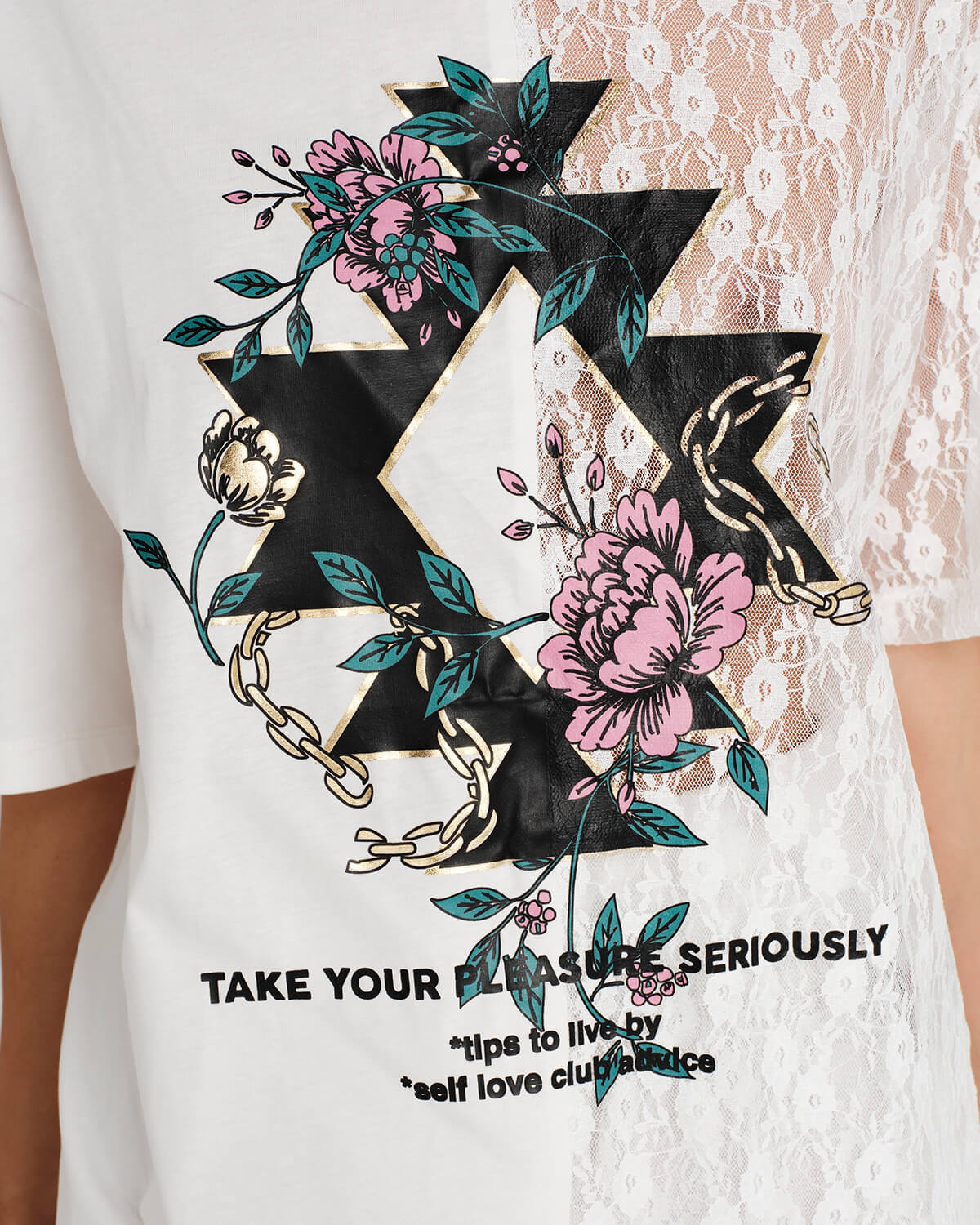 Peace And Chaos - Naturalistic T-Shirt - Cotton & Lace