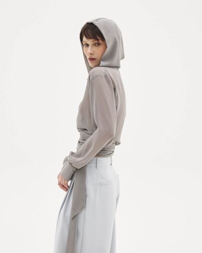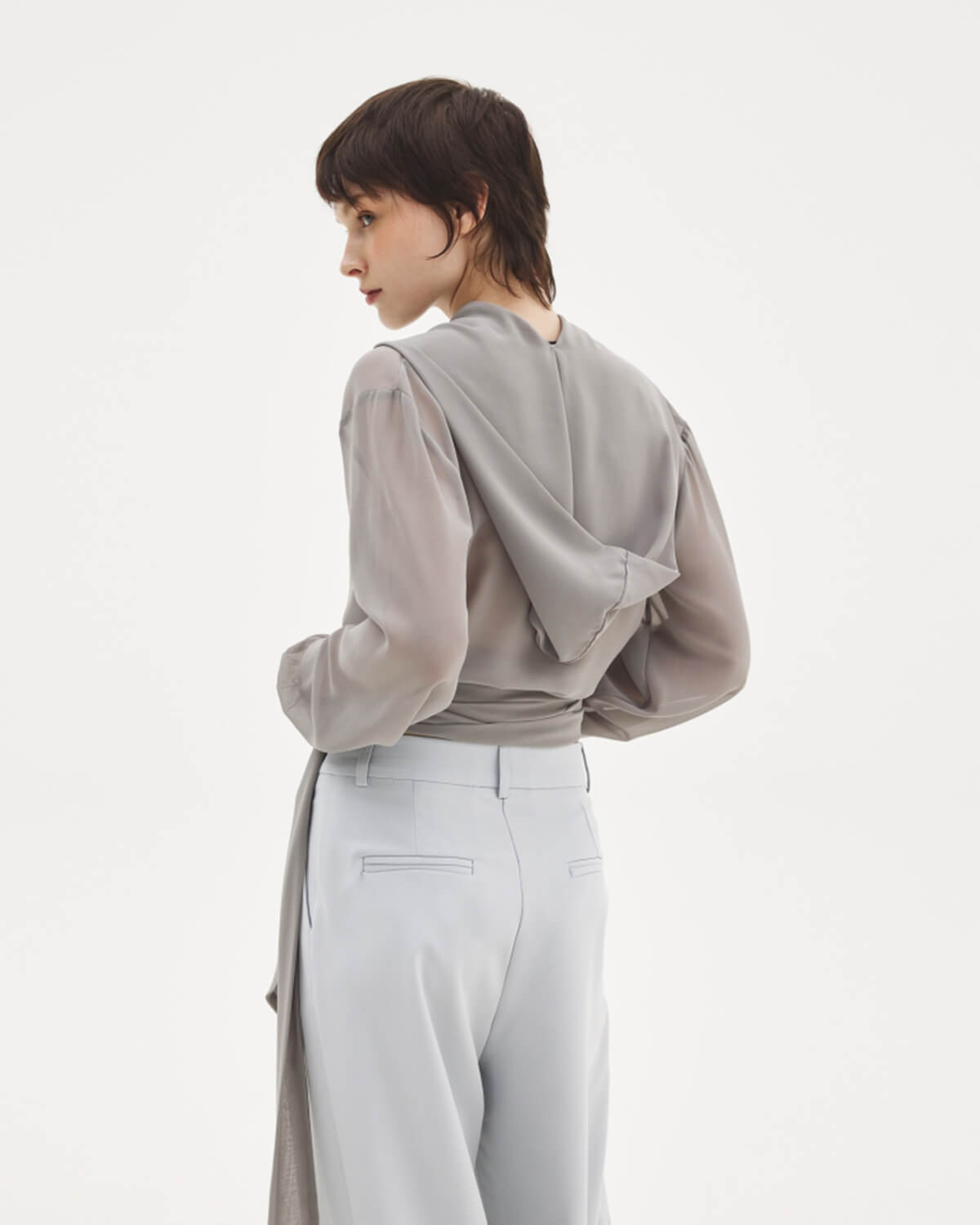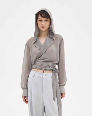Elevate your style with this iconic semi- transparent top by Sunsetgo for unique appearances in attitude and comfort. The hood and the wrapped style will make you stand out effortlessly, from morning till night with every of your looks.