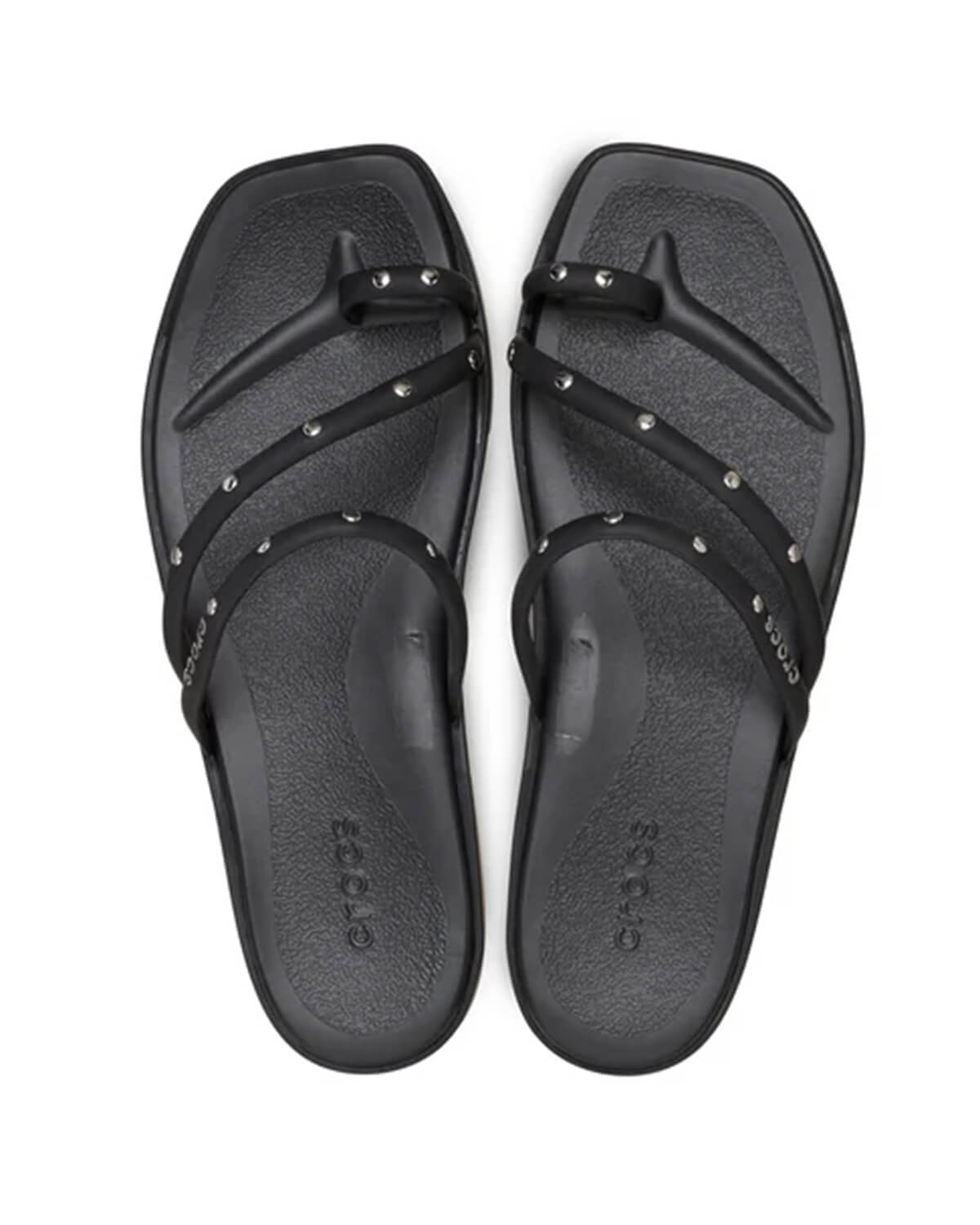 • Stylish Crocs sandals featuring a toe loop design with studded details