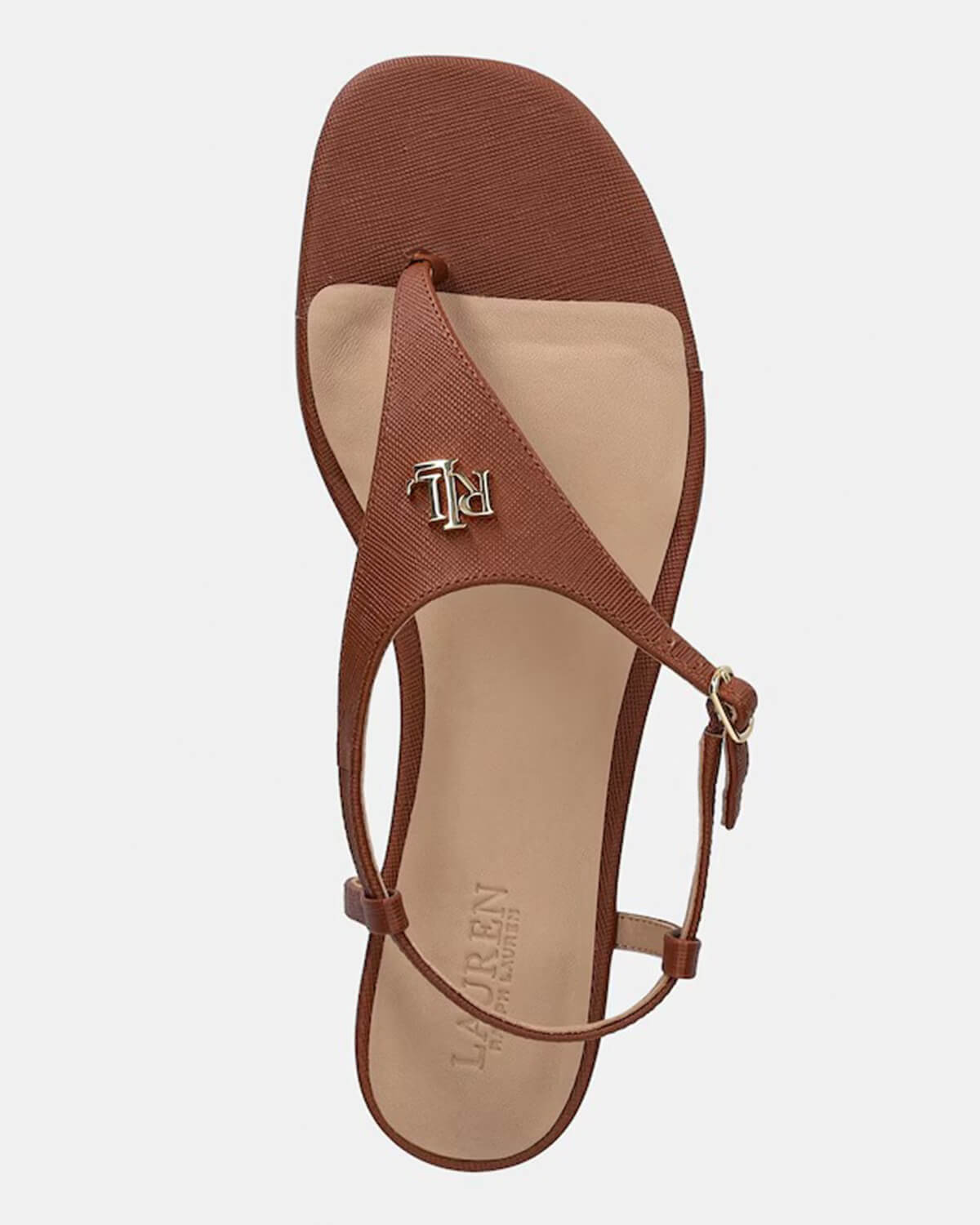 Ralph Lauren - Crsshtch Embsd Lthr-Everley 2-Sn-Fsa Flat Sandals