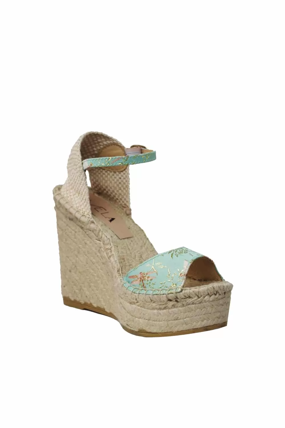 Favela - 489 FA High Platform Espadrilles. Espadrilles platforms with efect rope inn the heel and delicate motif in the front place. Tie the ankle and seure with buckle while it fits with everythink. Dare to wear it with socks with midi and mini skirts of yours for retro charm and feminine.Heel 12cm snap 4cm.
