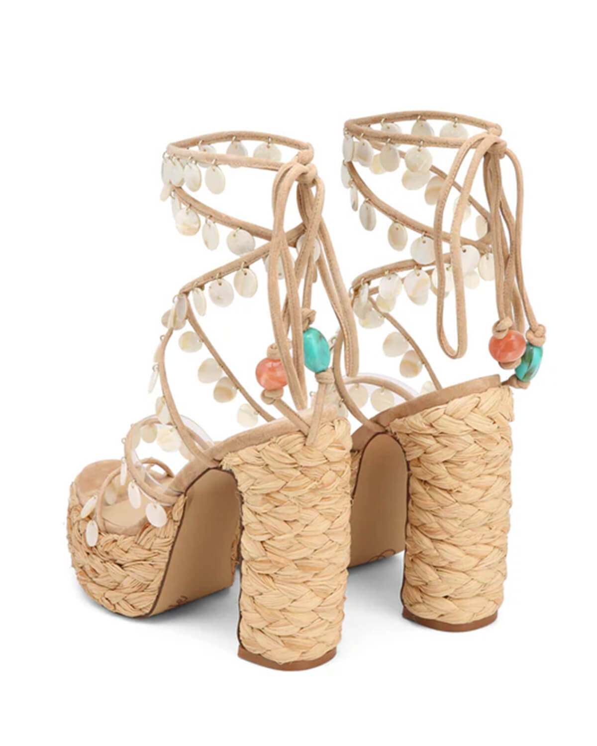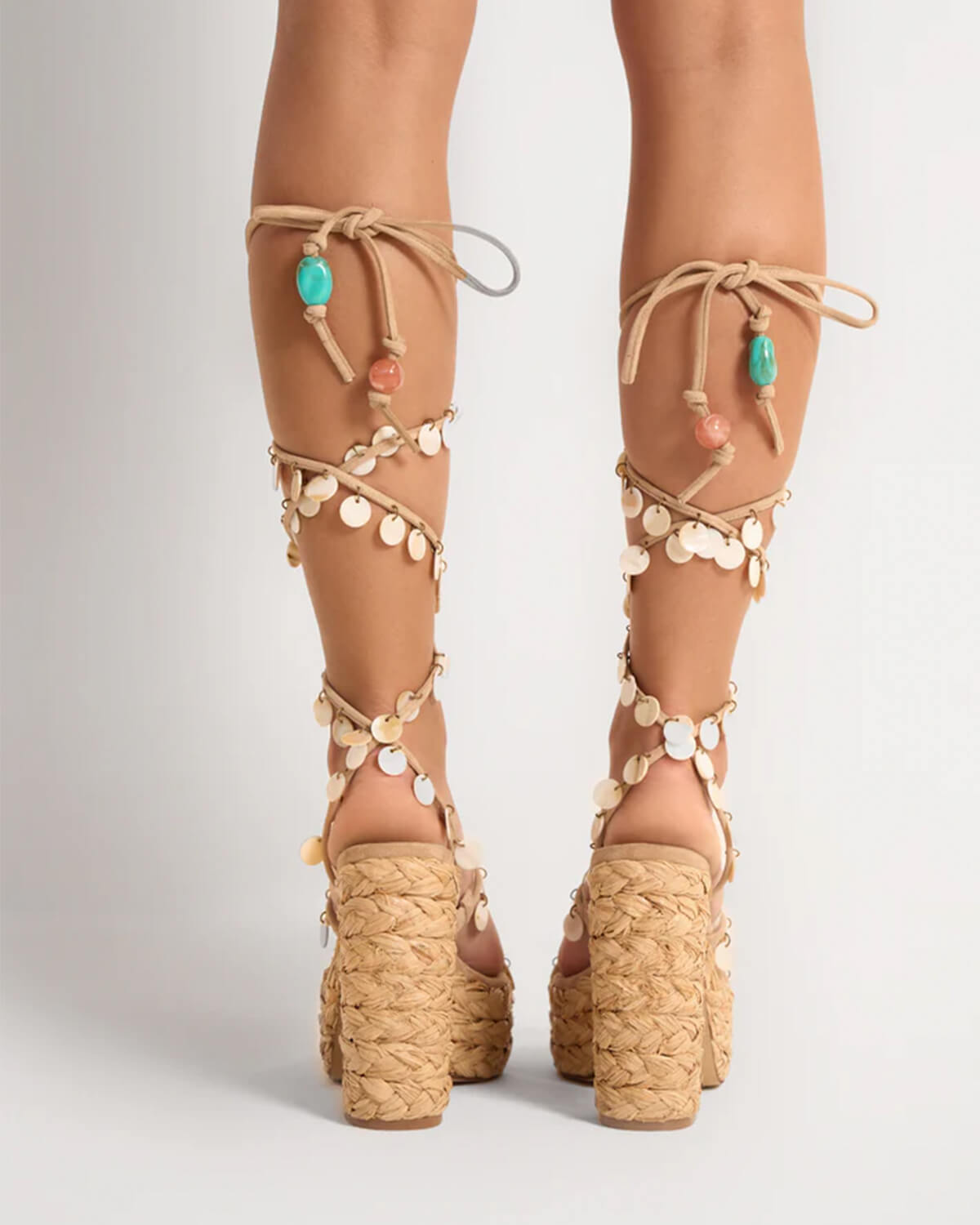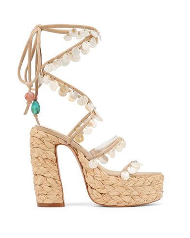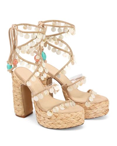 Elevate your style with this iconic pair of platforms by Naked Wolfe, for unique appearances in attitude and comfort. The raffia texture and the beaded details will make you stand out effortlessly, from morning till night. Shipping worldwide.